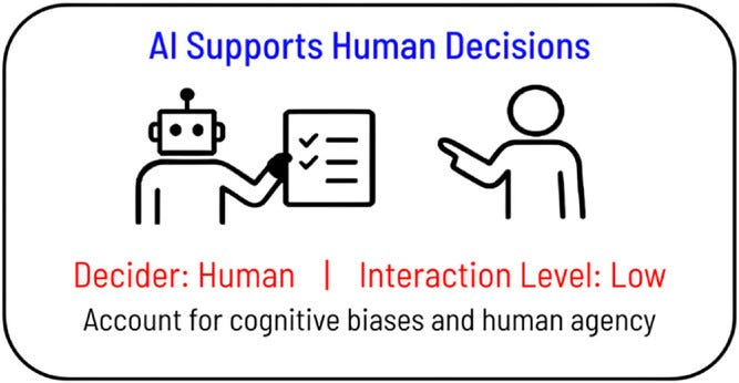 Z perspektywy projektowej bywa on postrzegany jako „najbezpieczniejszy”, ponieważ formalnie nie odbiera człowiekowi kontroli. Badania przywoływane w dokumencie pokazują jednak, że formalna odpowiedzialność nie zawsze oznacza realną sprawczość.